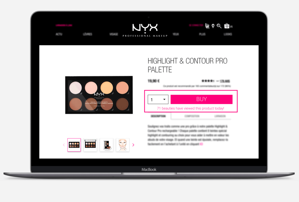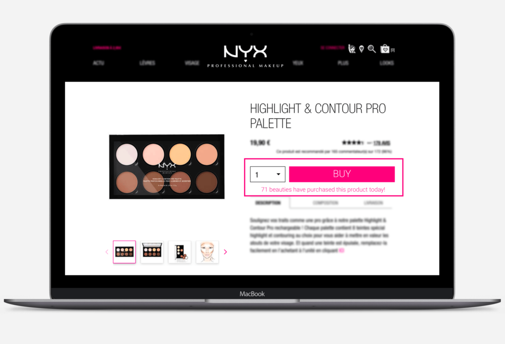 NYXプロフェッショナルメイクアップのチームは、フランスのECサイトの商品ページで、シンプルなソーシャルプルーフメッセージがどれほど効果的か検証するためのABテストを実施しました。