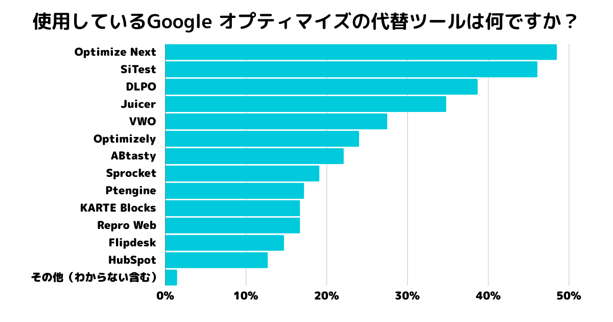 また、調査では「Optimize Next」、「SiTest」、「DLPO」といった特定のツールがGoogle オプティマイズの代替として利用されていることが明らかになりましたが、それでも多くのユーザーが自社に最適なツールを見つけるためのガイダンスを求めています。この状況は、ABテストツールの選定プロセスにおいて、より詳細な比較情報や専門家によるアドバイスが必要であることを強調しています。