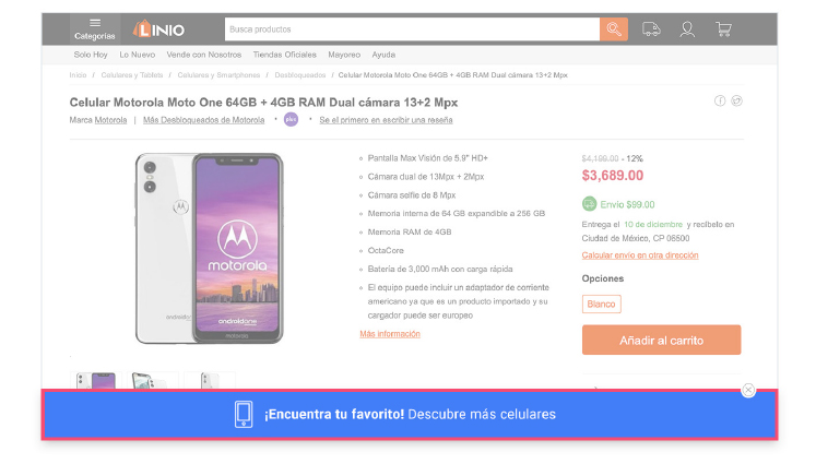 Linioは、有料およびオーガニック検索経由で商品詳細ページに初めてアクセスした訪問者のほとんどが高い離脱率であることに気付きました。
