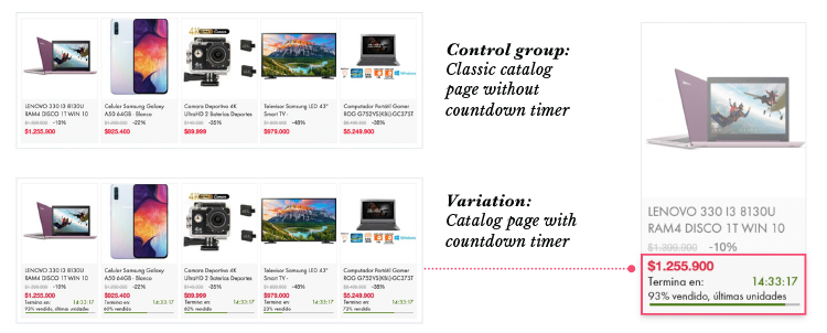 さらに、商品詳細ページでは、購入へのためらいを軽減しコンバージョン率を高めるためには、どのメッセージがより効果的かを判断するために、さまざまな訴求をテストしました。