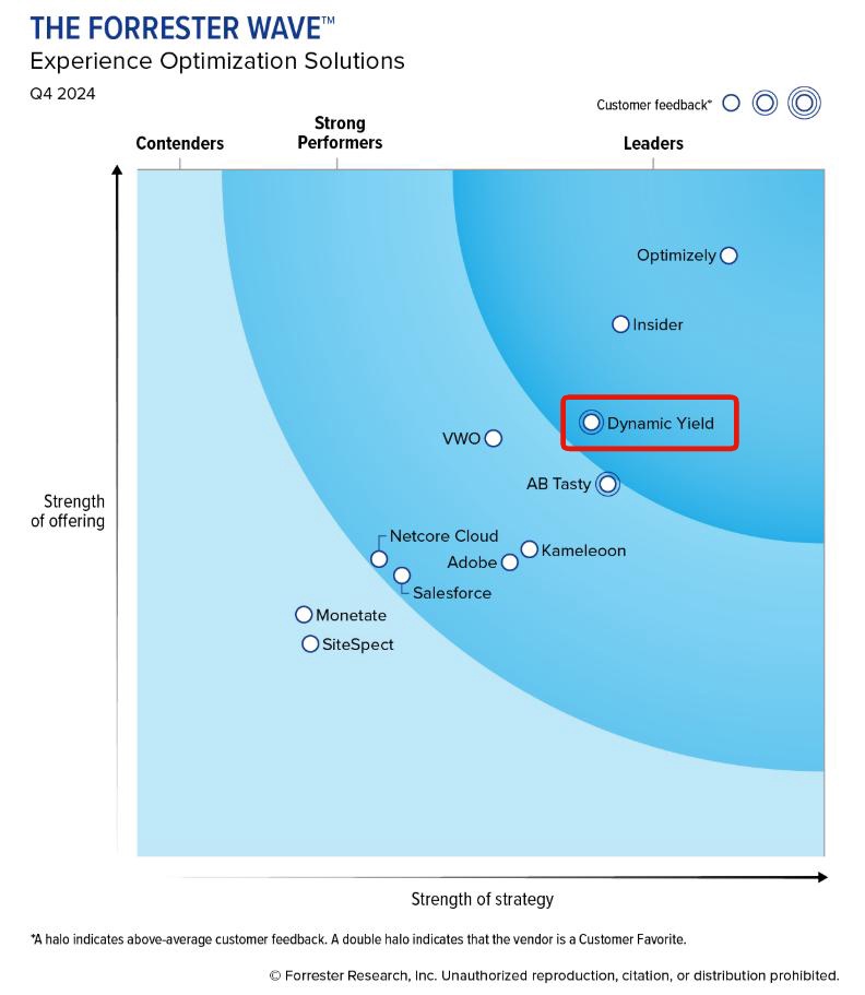 Dynamic Yieldは、GartnerとForrester Wave™両社の2025年の評価において、パーソナライゼーション市場のリーダーとしての地位を確立しています。それぞれのレポートから、主要な評価ポイントを見ていきましょう。