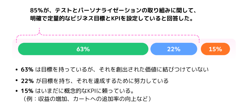 - 組織は価値あるデータを収集していますが、拡張可能なパーソナライゼーションフレームワークを効果的に実装することは依然として課題となっています。多くの組織が、包括的なテスト、限定的なデータ活用、テスト結果の不適切な伝達に苦戦しています。