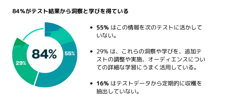 パーソナライゼーションチームに包括的なテストを実施する自律性が与えられたとしても、ほとんどの組織は収集したデータを活用し、主要なプログラム活動を効率化するための手順が不足しています。ほとんどの組織がデータ駆動の洞察を反復的なテストと洗練プロセスに活用していないため、オーディエンス戦略を最適化する能力が制限されています。