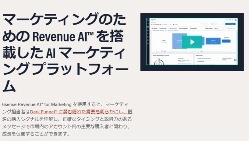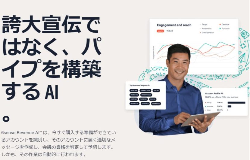 6senseは米国・カリフォルニアに本社を置くユニコーン企業のことで、AI顧客行動予測によるBtoB営業支援ツール「6sense」を提供しています。