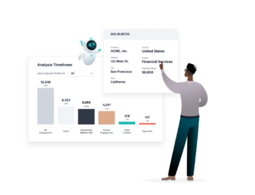 何百もの企業属性、CRMフィルター、エンゲージメント活動にわたって絞り込まれたターゲティングにより、最適なアカウントを積極的に予測します。そしてBtoBプロファイルの厳選されたデータベースからアカウントの購買チーム全体を発見し、その中の意思決定者を明らかにします。また連絡先情報、サイコグラフィックス、企業グラフィックスなど、さまざまな最新情報にアクセス可能です。