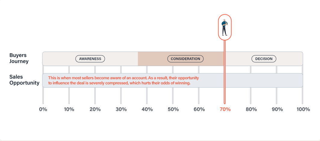 - バイヤーがベンダーと直接やり取りするまでに、購入プロセスは70%完了している(一般的な取引サイクルは8か月)