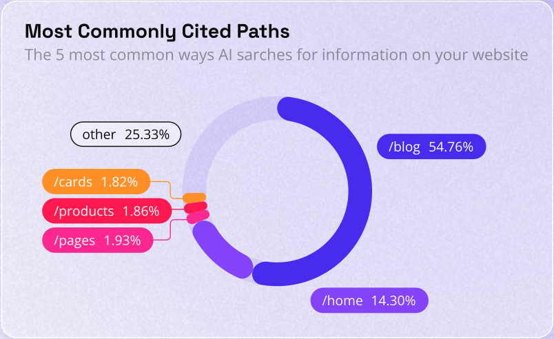 とはいえ、自社サイトが無意味なわけではありません。AIボットが企業の情報を収集する際、最も頻繁に参照するエントリーポイントは /blog (37.1%) と /home (18.2%) であることが判明しています。
