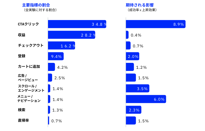 実験に関する真実をお伝えしましょう。すべての実験指標が同じ価値を持つわけではありません。90%以上の実験が以下の5つの一般的な指標を対象としています。