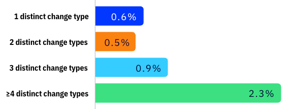 - チェックアウトでテストされるすべてのバリエーションの半分以上が、1つの変更タイプのみをテストしています