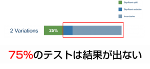 世界No1.ABテストツールOptimizely社の調査によると、統計的有意性がでる平均勝率は25%と言われています。つまり、ABテストは「4回に1回しか勝てない」方が多いの現状です。
