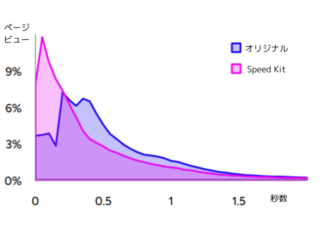 Speed Kit導入前後でどのように変化したのか、以下グラフで示しています。全体で185ミリ秒、実に1.7倍の高速化に成功しました。