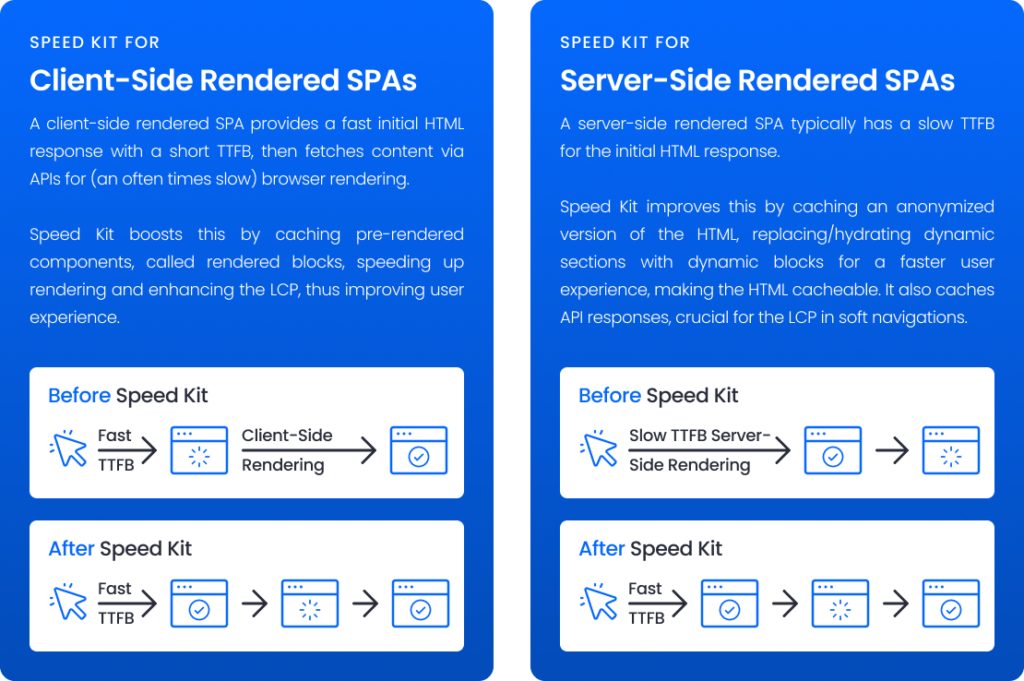 TUI Cruises Mein Schiffの事例では、Speed Kitがこれらの両方を最適化することで、全体的なユーザー体験を向上させました。特にAPIレスポンスの76%削減は、SPAの動的な特性を最大限に活かすことに成功しています。