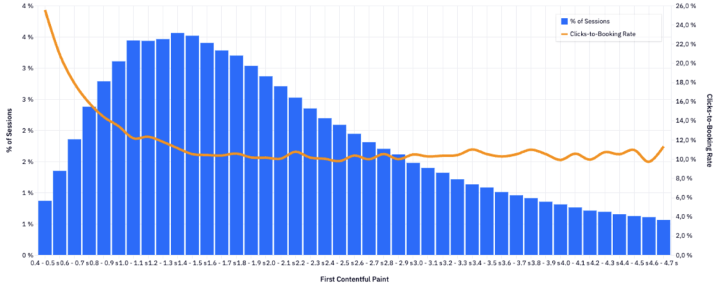 - FCPが100ミリ秒遅くなるごとに、クリックから予約までの率が1.3%低下