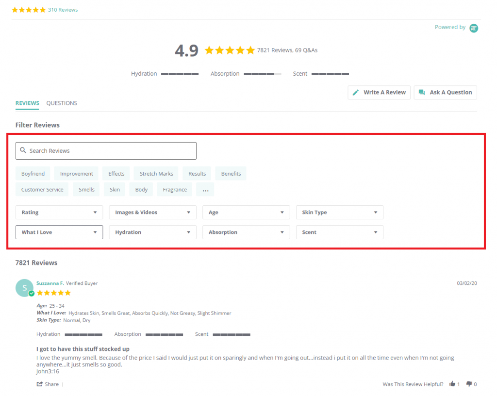 でレビューを並べ替え、同様のニーズを持つ過去の購入者のコンテンツを表示できるようにしました。